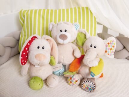 Fehn Kuscheltier Bär Bruno – Weicher Teddybär für Neugeborene als Einschlafhilfe – Stofftier zum Greifen, Fühlen